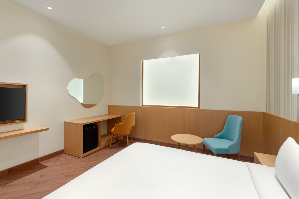 For travelers in transit through Lucknow, the Premium Rooms at Ramada Encore provide an oasis of comfort and convenience right within the airport. Designed with the needs of the modern traveler in mind, these rooms offer a serene environment to unwind between flights. With thoughtful amenities like 24-hour room service, a refreshing rain shower, and blackout curtains, guests can rest and recharge, ensuring they are well-prepared for the next leg of their journey. The seamless blend of luxury and practicality makes our Premium Rooms the perfect choice for those seeking a restful stopover.